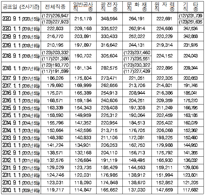 2020년 하반기 정부노임단가 시중임금적용 근거