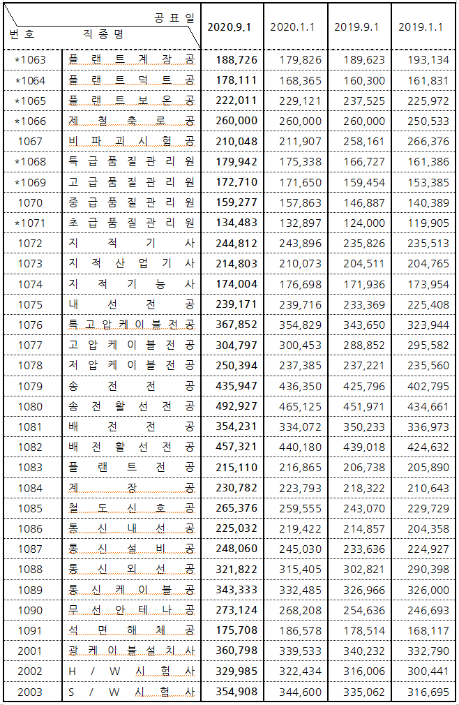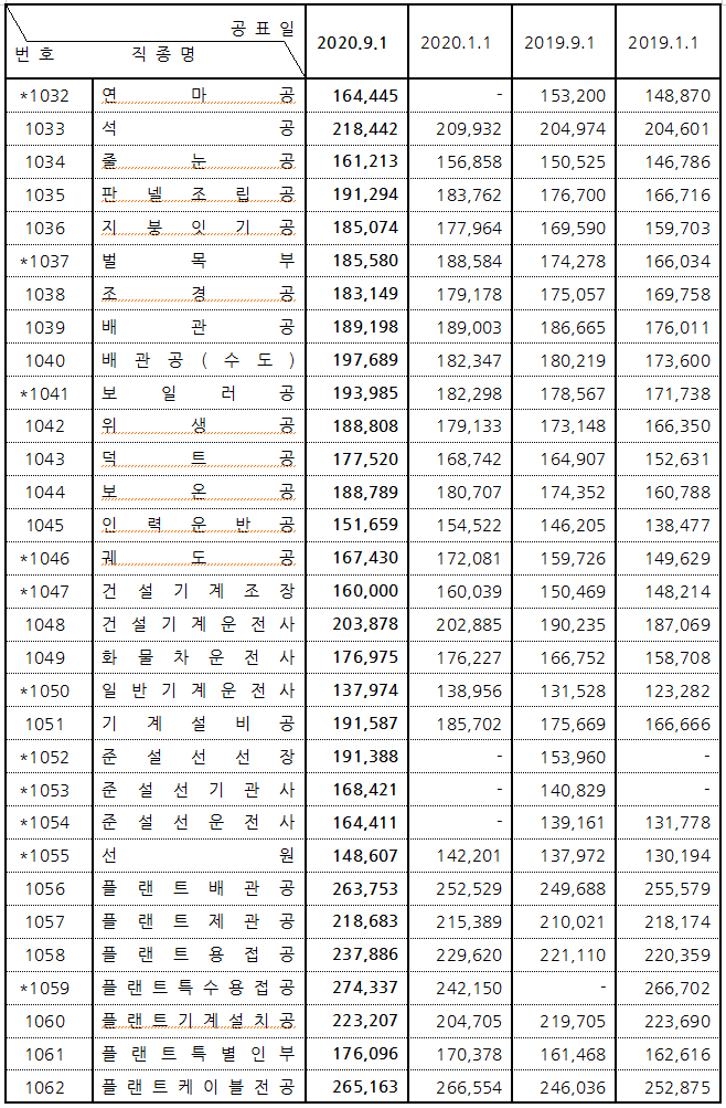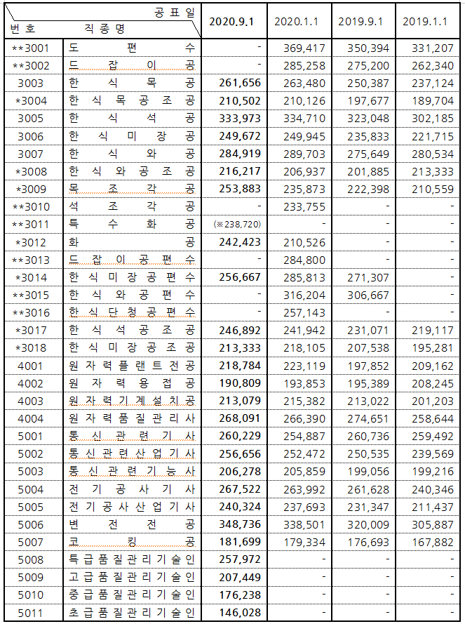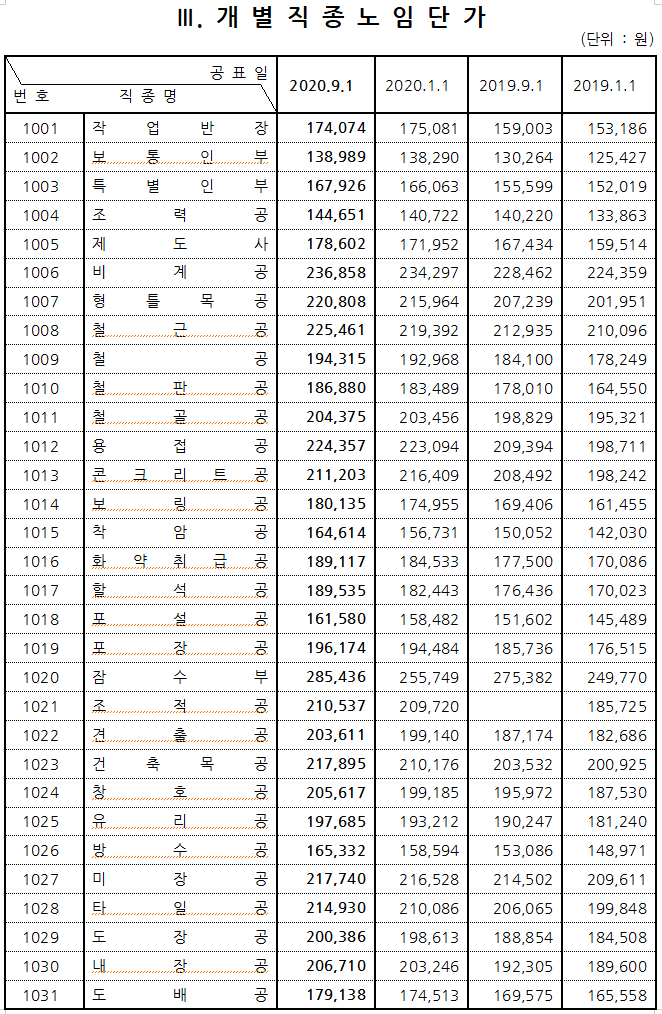 2020하반기노임단가 추세 9월부터 2020하반기노임단가 확정 표가 나오면서 기존의 노임단가 금액에 대해 변경된 부분을 확인해 볼 수 있는데요, 이 노임표는 해년마다 1월과 9월에 발표되고 있습��