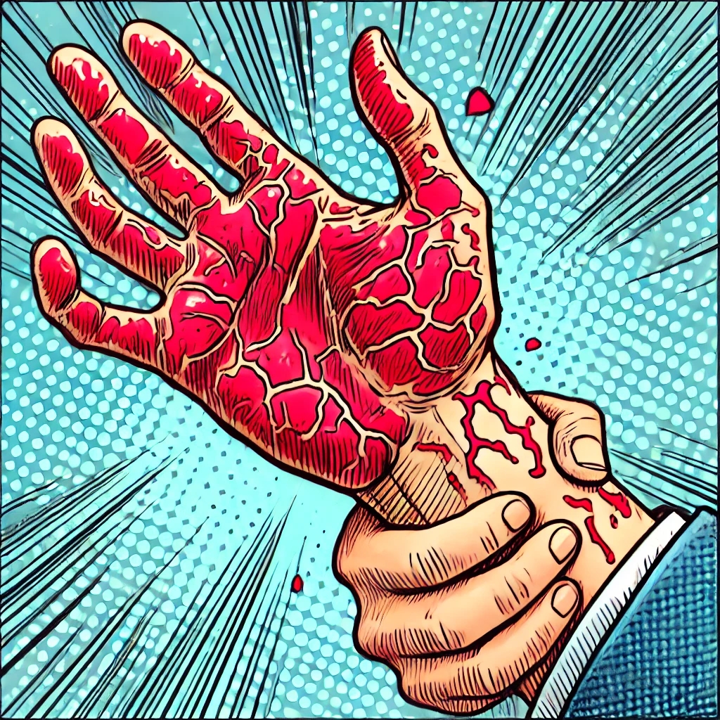 - 손목, 목, 손바닥 등에 피부가 두꺼워짐.