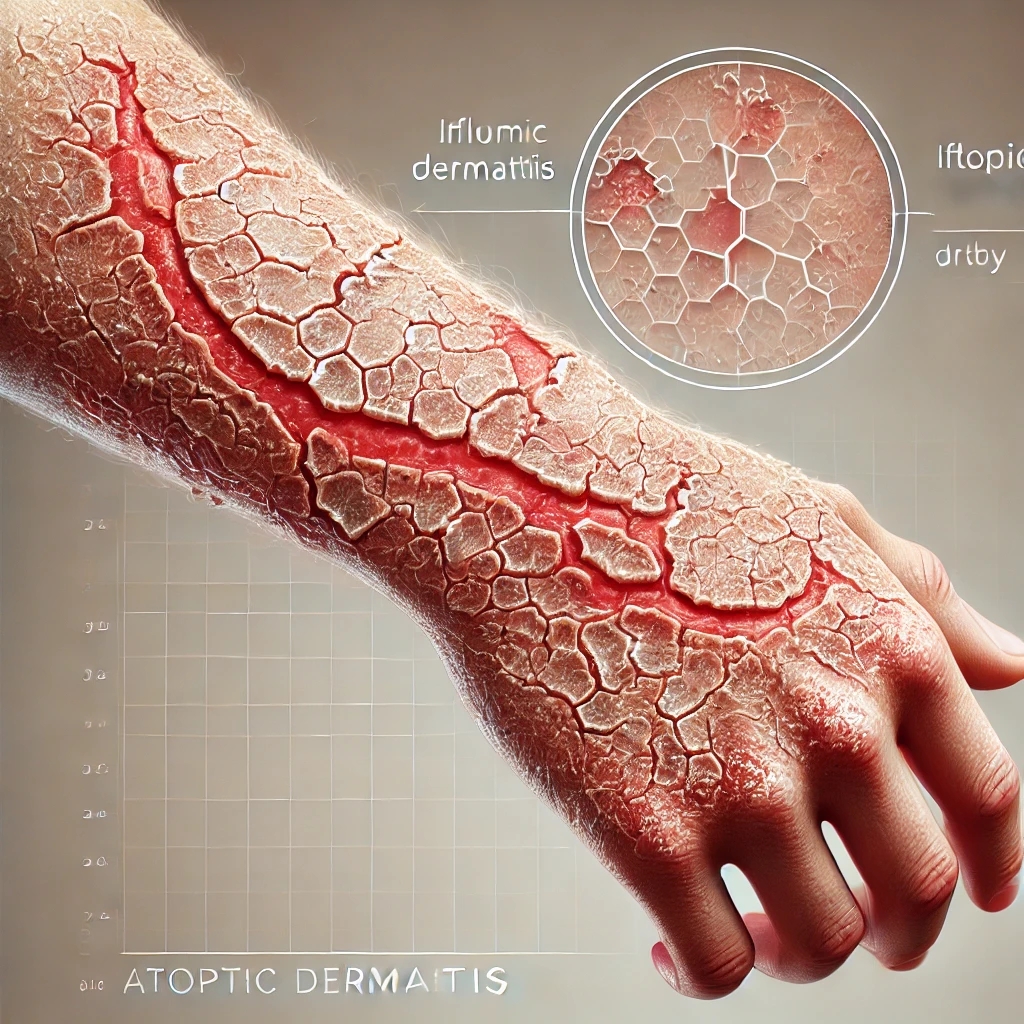 아토피 피부염(Atopic Dermatitis)은 피부가 건조해지고 가려움증이 심하게 나타나는 만성 염증성 피부 질환입니다.
