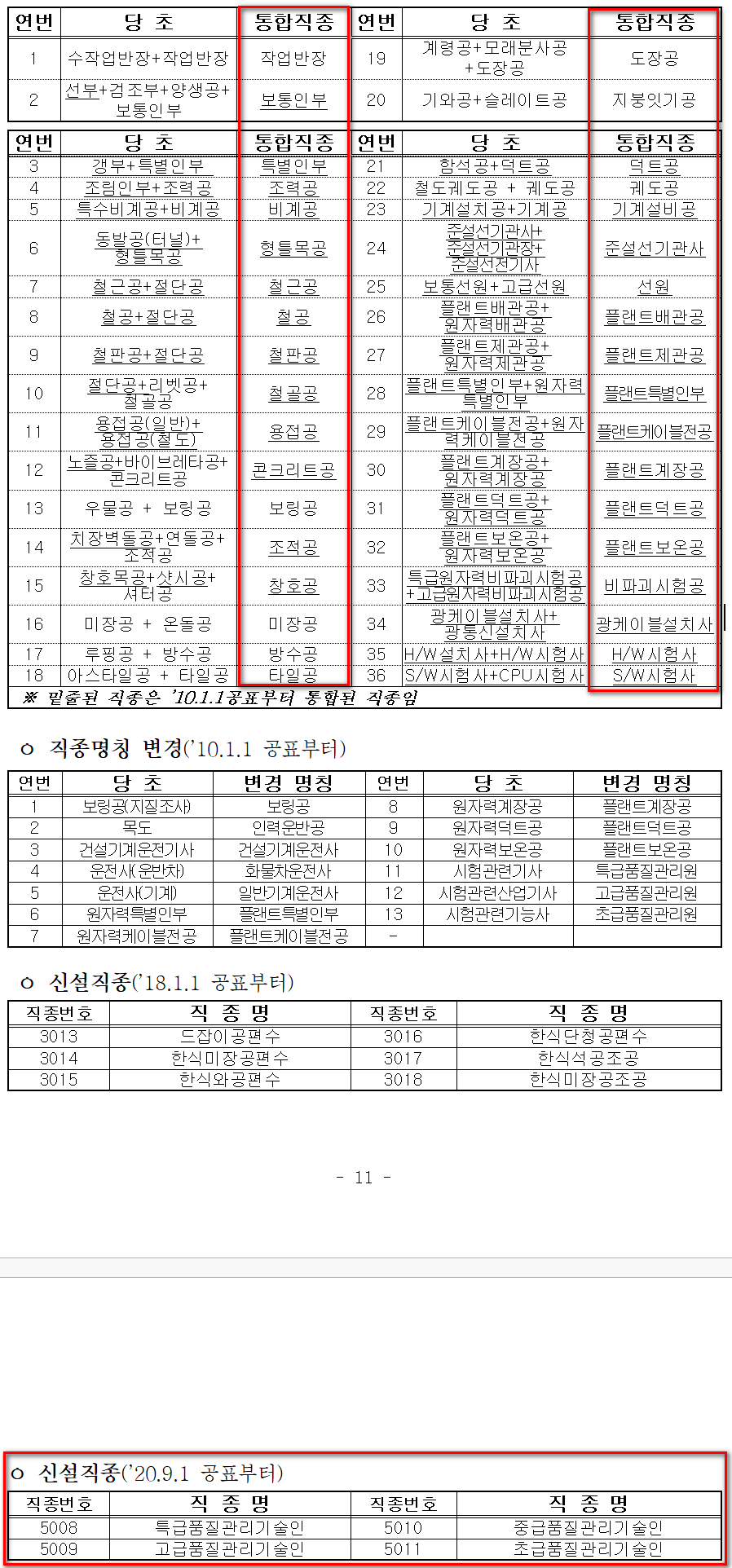 2021년 들어서 변경된 일부 직종 명칭에 대해 우선 확인하고 넘어가시길 바랍니다. 기존에 운영되던 여러 직종 중에서 새롭게 통합된 직종과 기존에 통합되었으나 현재까지도 일부 혼용하여 사용되는 직종들이 다수 파악되었으며, 해당 직종에 대한 통합적인 안내가 실무에서 필요해 보입니다.
